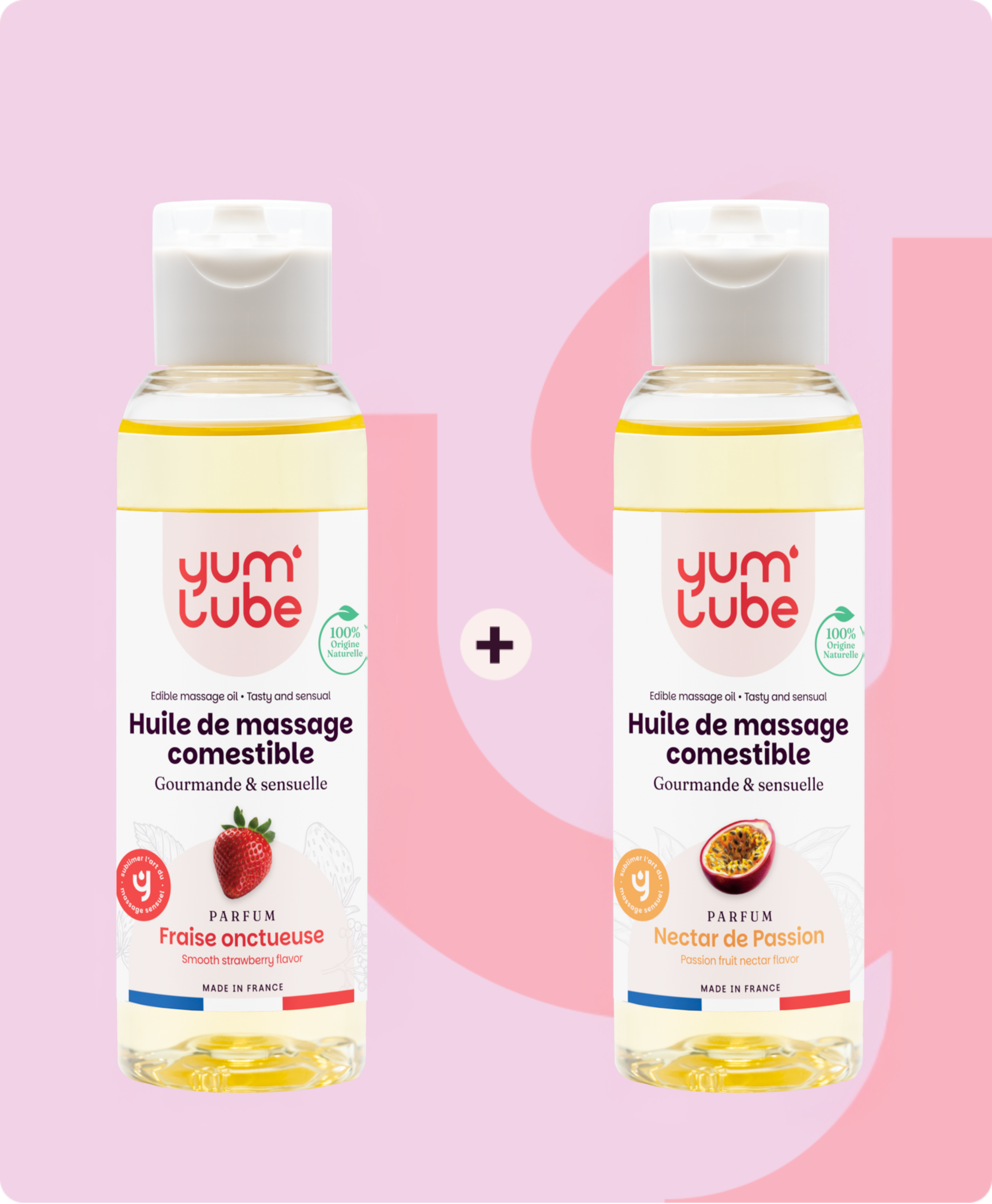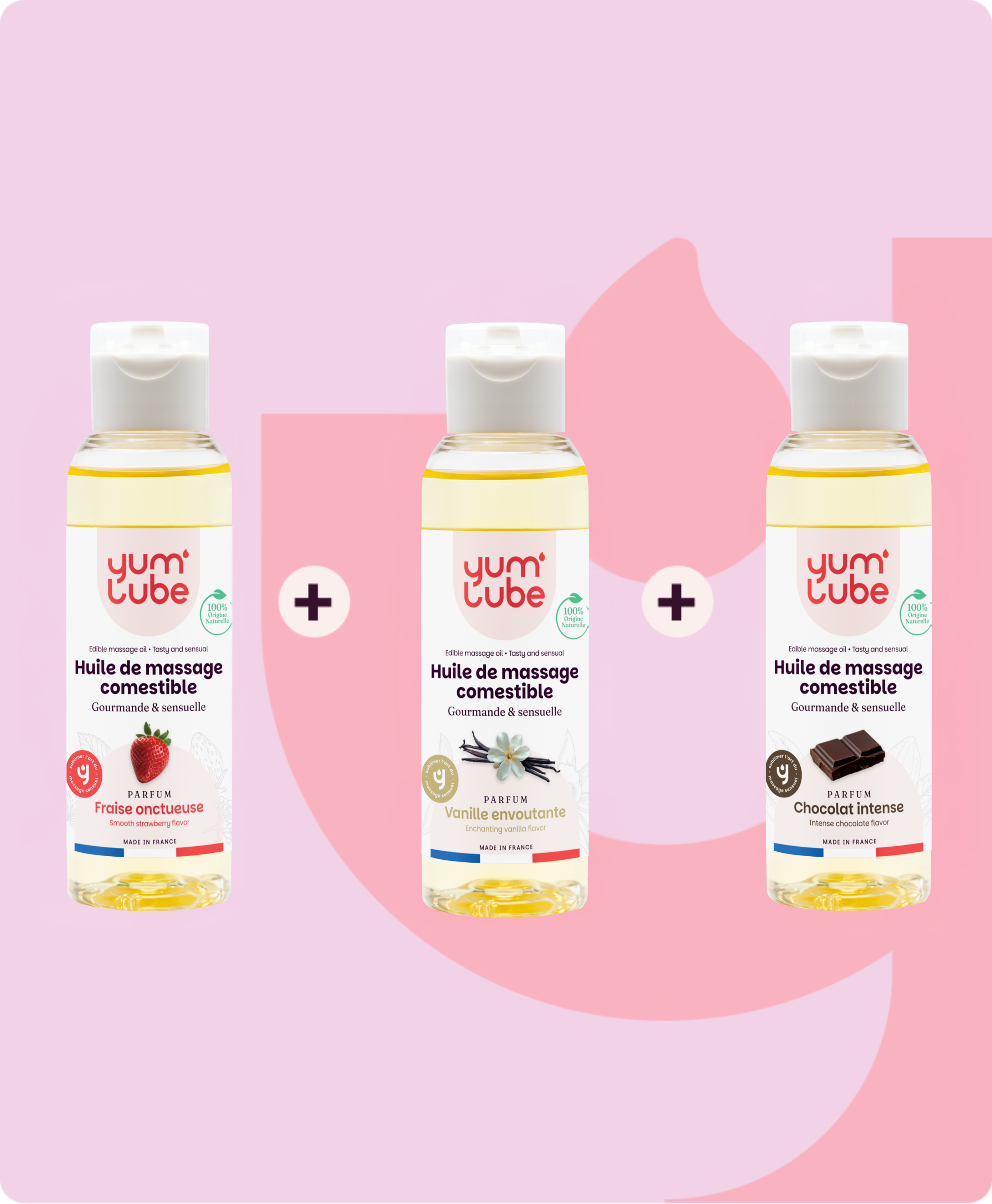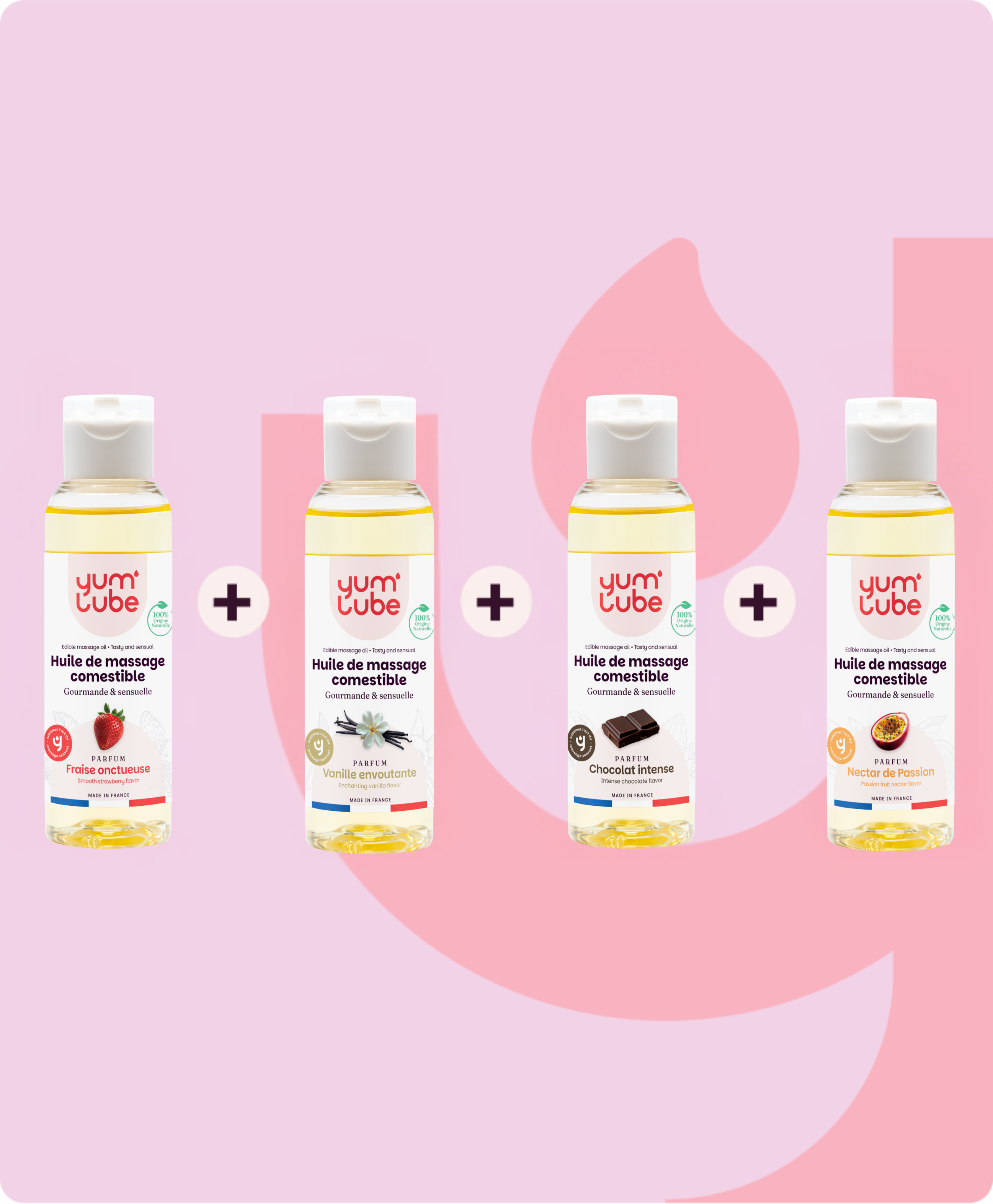 Chez Yum'Lube, chaque huile de massage est une invitation au plaisir des sens. Fraise juteuse, vanille chaude et envoûtante, chocolat intense, ou passion exotique. Nos saveurs authentiques sont conçues pour éveiller chaque sensation et intensifier vos moments de complicité grâce à ses différentes vertus et vous apporte tous les bienfaits de l'application d'un produit naturel.